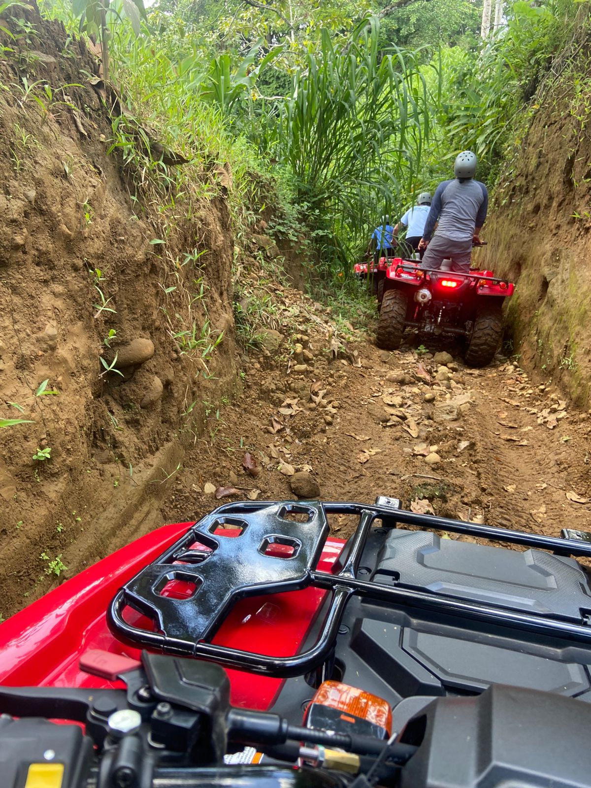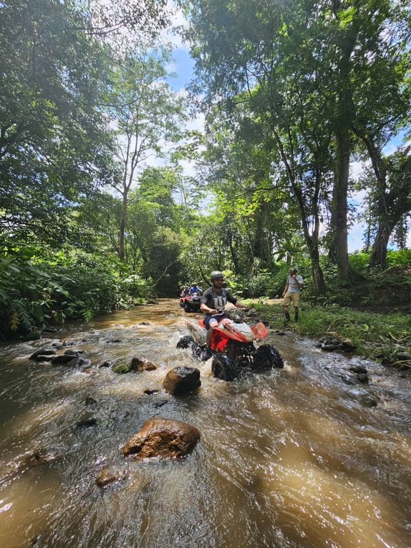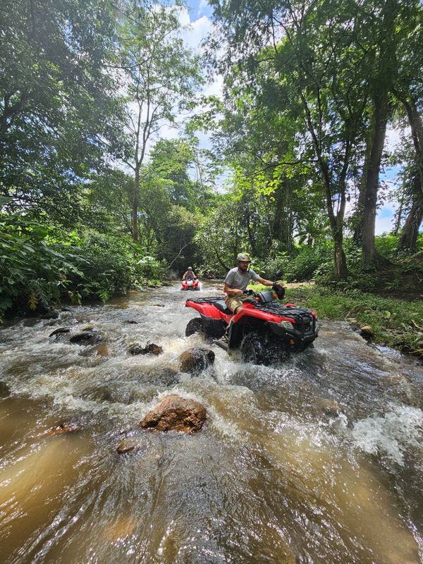 This combo combines two extreme adventures into one thrilling tour. We will start with a challenging ATV ride through a private farm with amazing views of the Arenal Volcano, followed by the opportunity to float over turbulence rapids on a tropical river. After some safety instructions and a driving test, we will begin our ride on modern ATVs through mountainous terrain and prairies for approximately 28 km (17 miles) while taking in the breathtaking views of the Arenal Volcano and the volcanic mountain range.