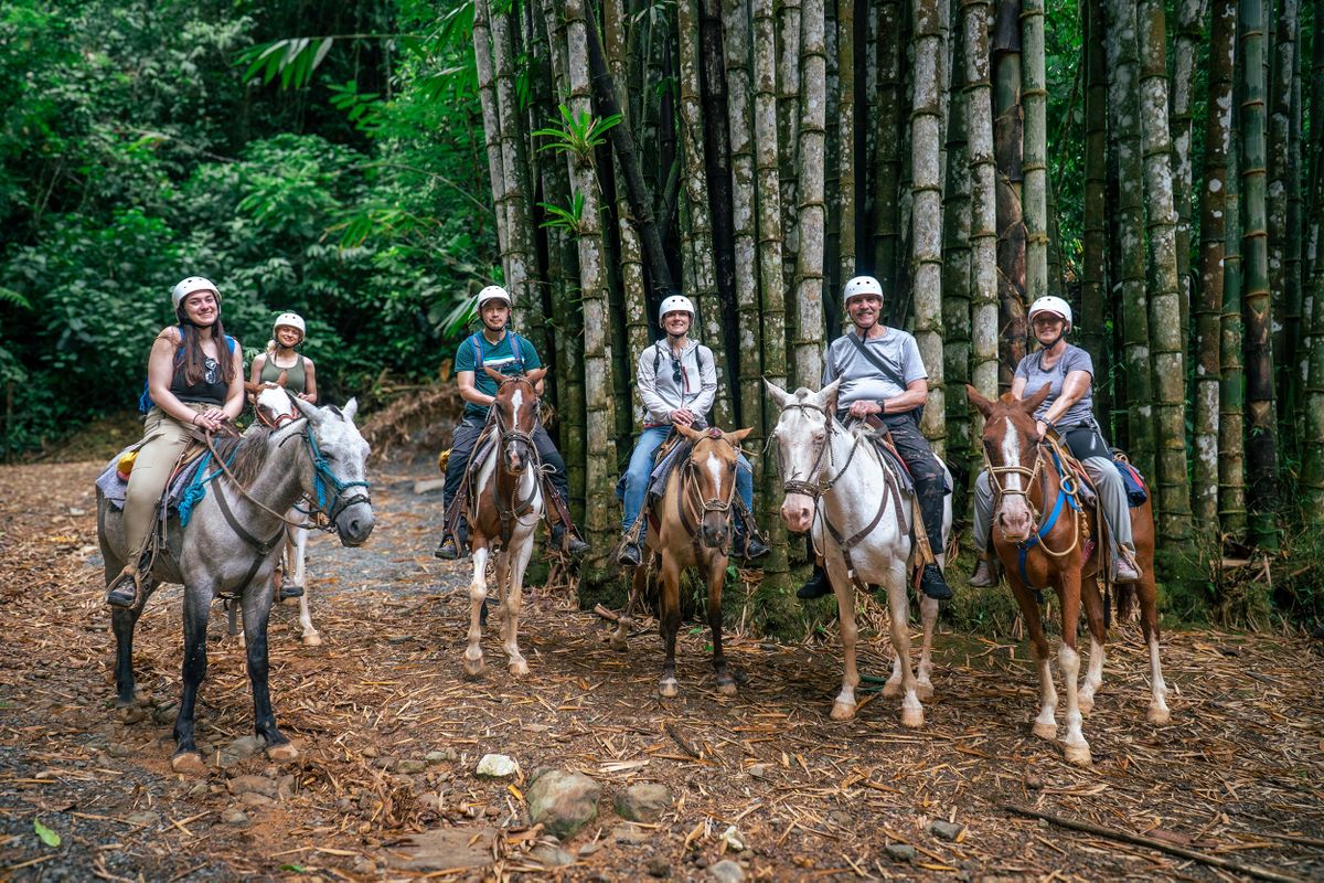 Start with a scenic 45-minute horseback ride through the rainforest, ending at a stunning picturesque natural swimming, where you can relax or swim. After a short refreshing stop, continue your ride for another 45 minutes, followed by a delicious organic lunch.